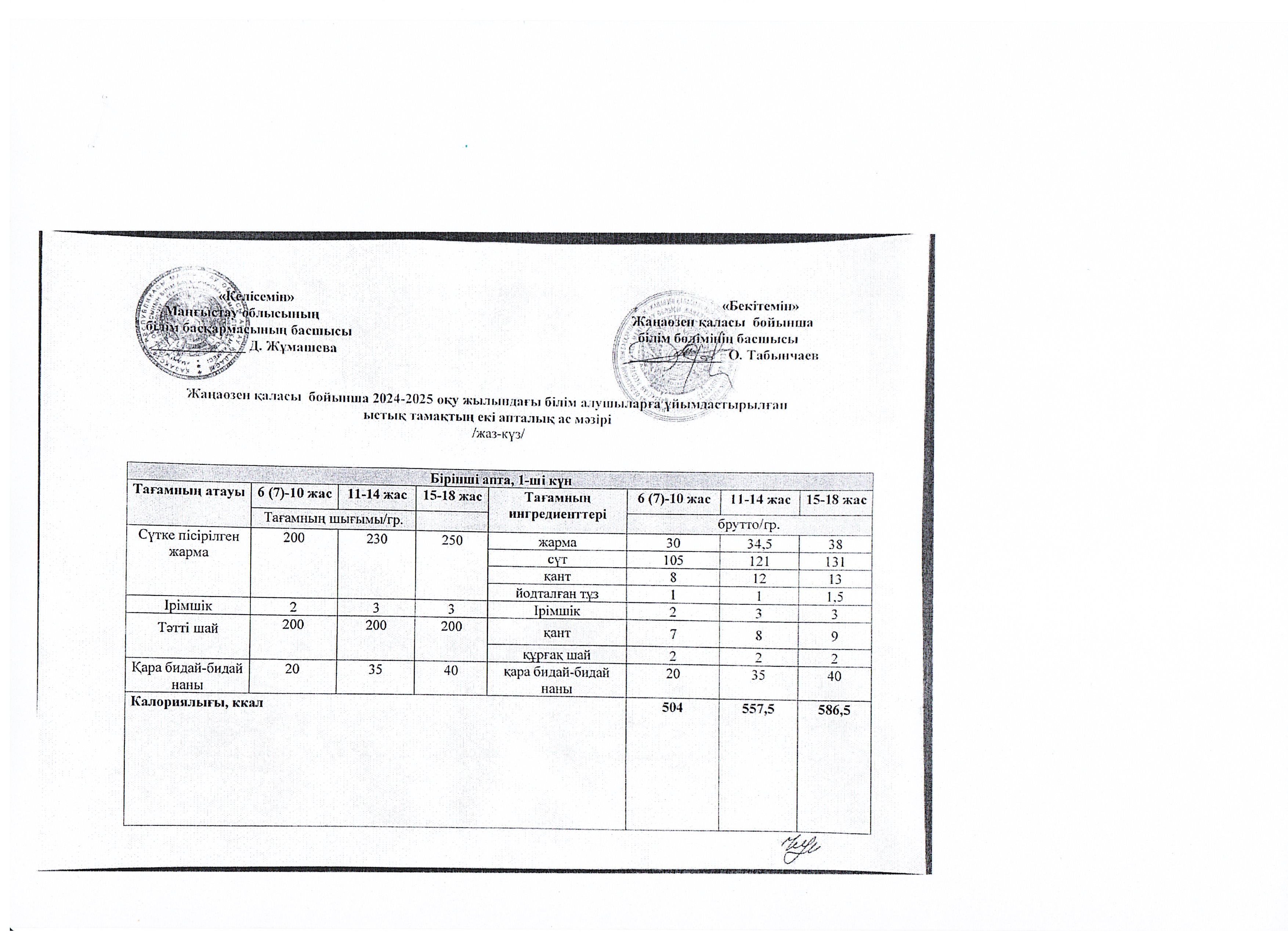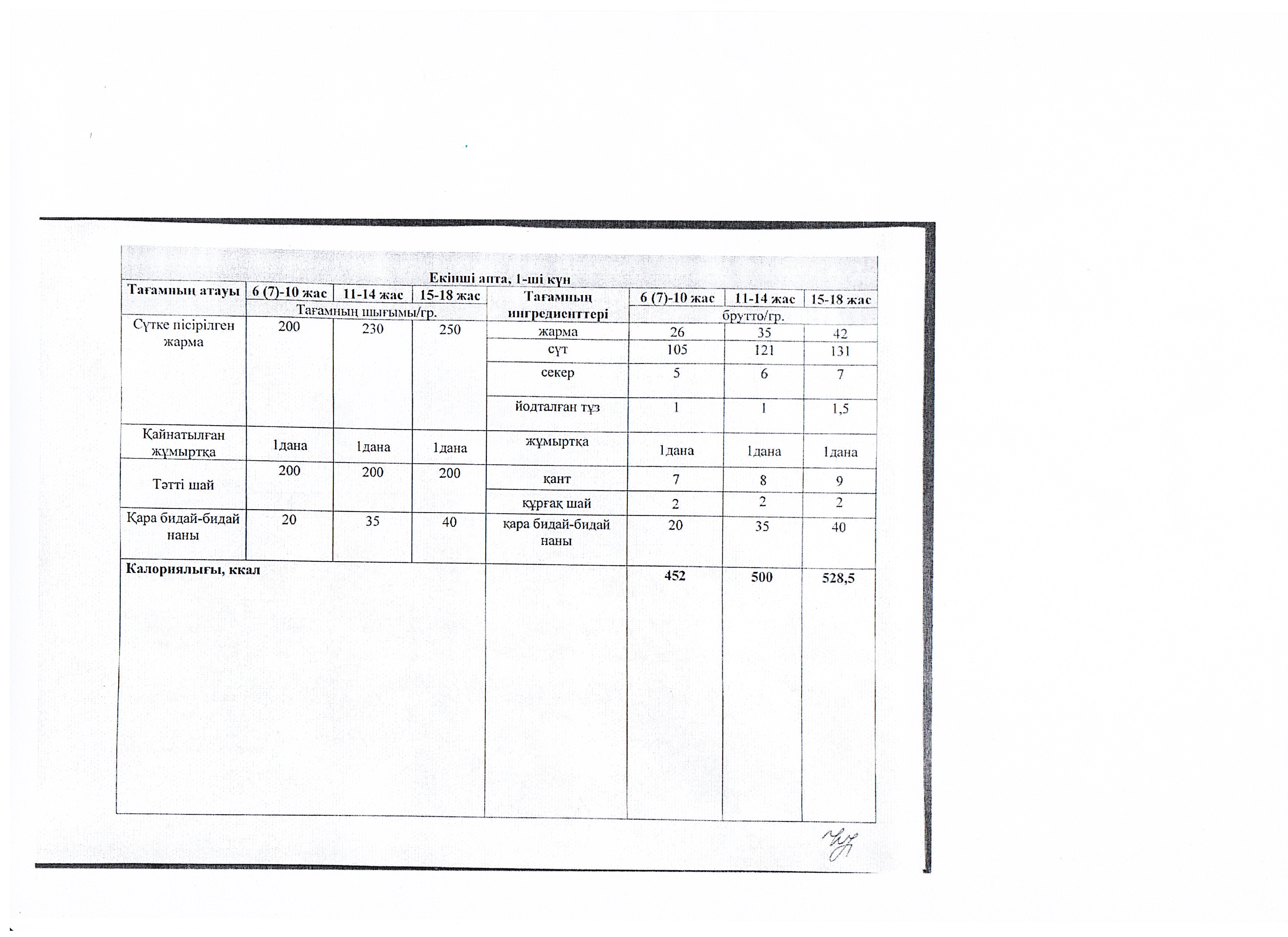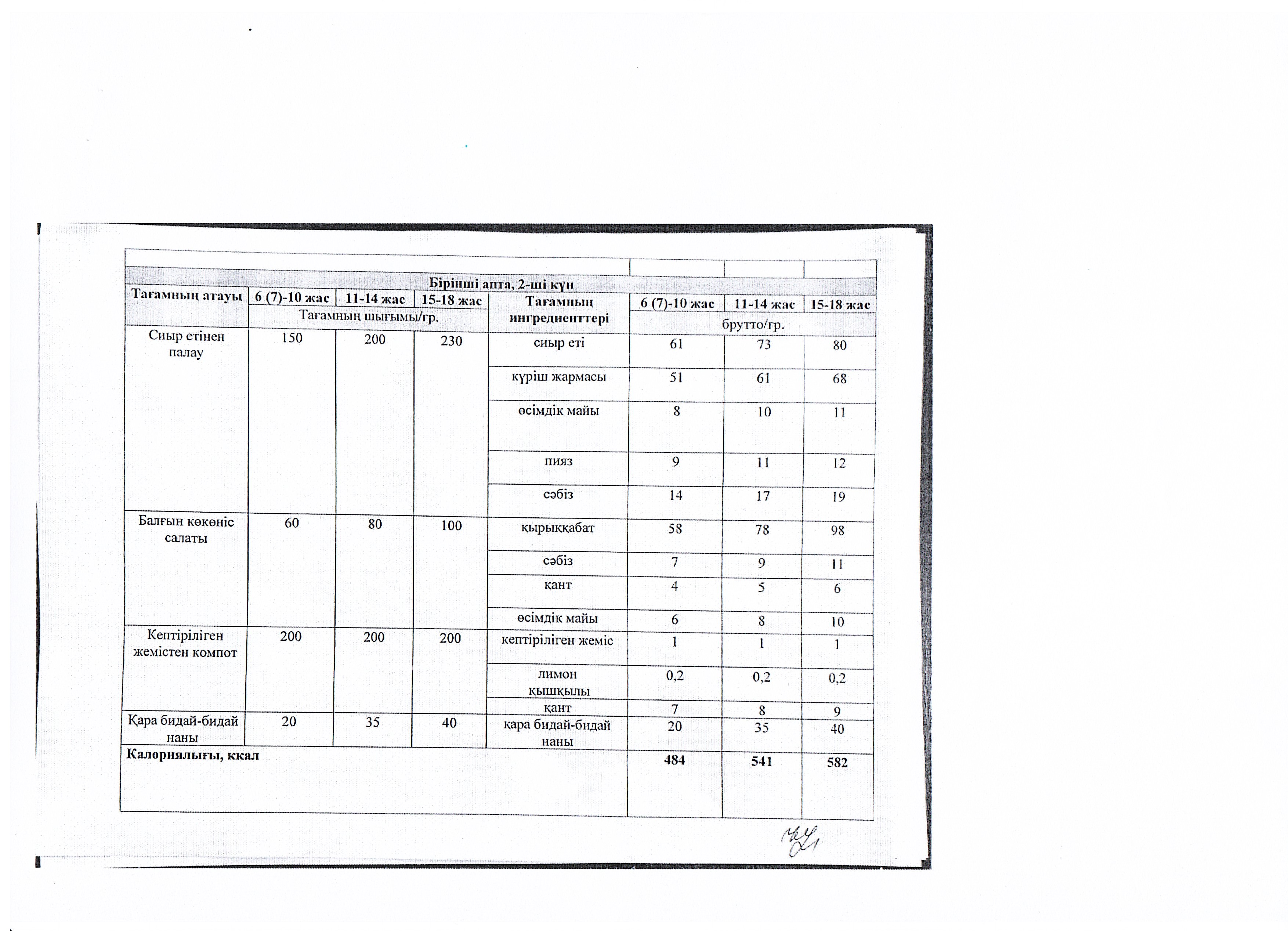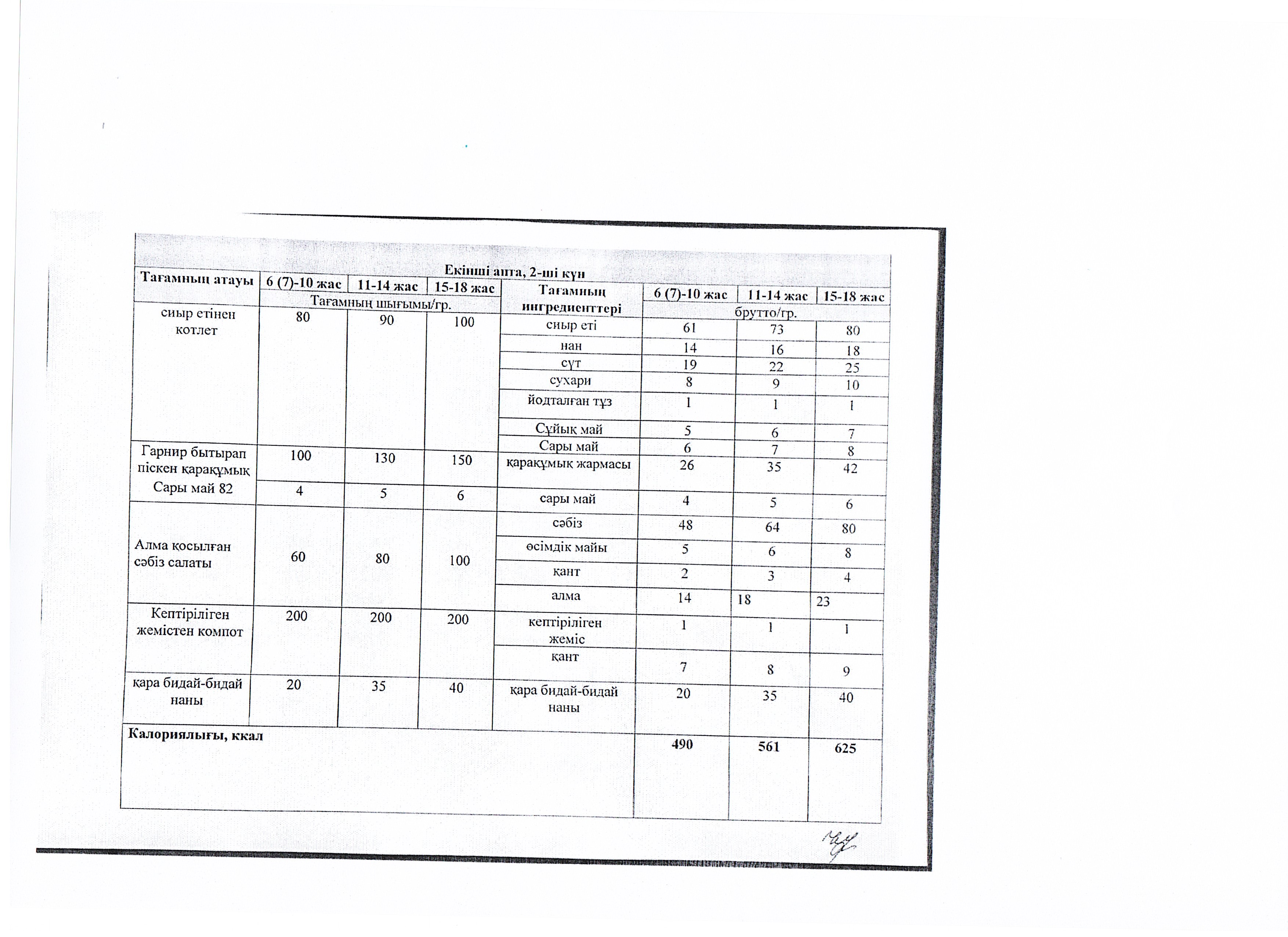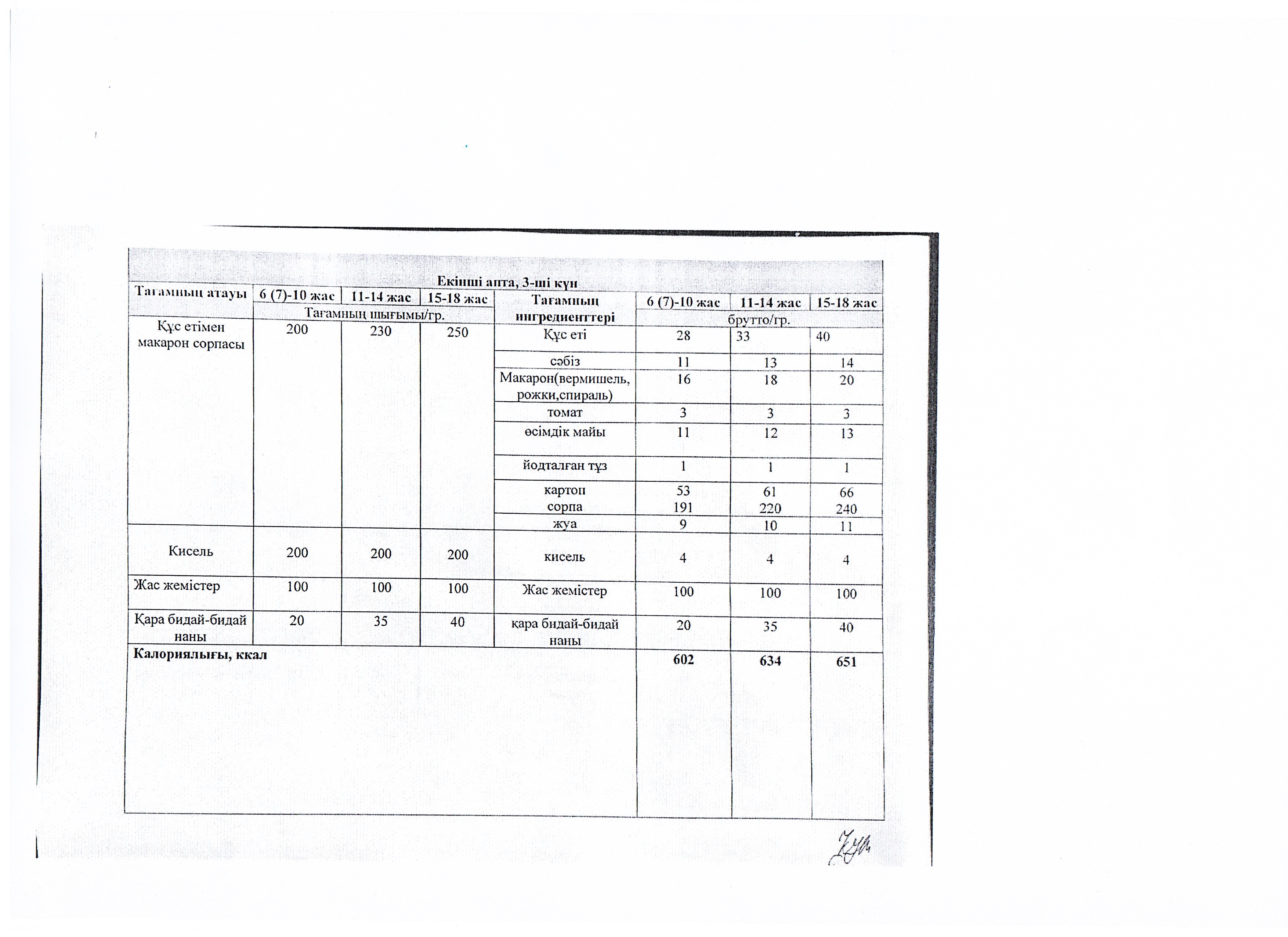 Мектеп оқушыларының екі апталық тамақтануының ас мәзірін ұйымдастыру
